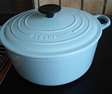 There is one caveat though: you need a really heavy bottomed, thick-walled pan. A plain old thin-walled saucepan simply won't cut it. I used a 24cm diameter or medium-sized round Le Creuset French Oven, pictured here. It's a wonderful pot that I use just about every day for various things. (It's not an exaggeration to say that it's the best investment I've made, kitchen-equipment wise, and I'm saving up my pennies now to buy both the smaller and larger versions.) It is expensive if you buy retail (if you have a Le Creuset outlet store near you be sure to check them out) but worth every penny. And, it is cheaper than a good rice cooker and more multi-purpose too.