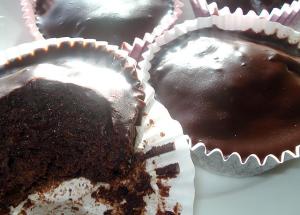 These cupcakes have a rich but not too sweet bisquit (cake) base, with the warmth of curry powder and the bite of coarsely ground pepper. They are moistened with a teaspoon per cupcake of mocca liqueur, which increases its intensity and pushes it into the realm of an adult indulgence. The chocolate ganache has a pinch of cayenne pepper in it. The marriage is quite successful (or so the Tasters emphatically agreed). I'm not sure if they work at aphrodesiacs, but if your sweetheart is a chocoholic, you never know... They make a terrific Valentine's Day dessert or treat in any case.