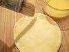 Paint the edges of the circle with the egg wash. Don't make it too wet - the purpose of the eggwash it to act as a glue to form a seal.